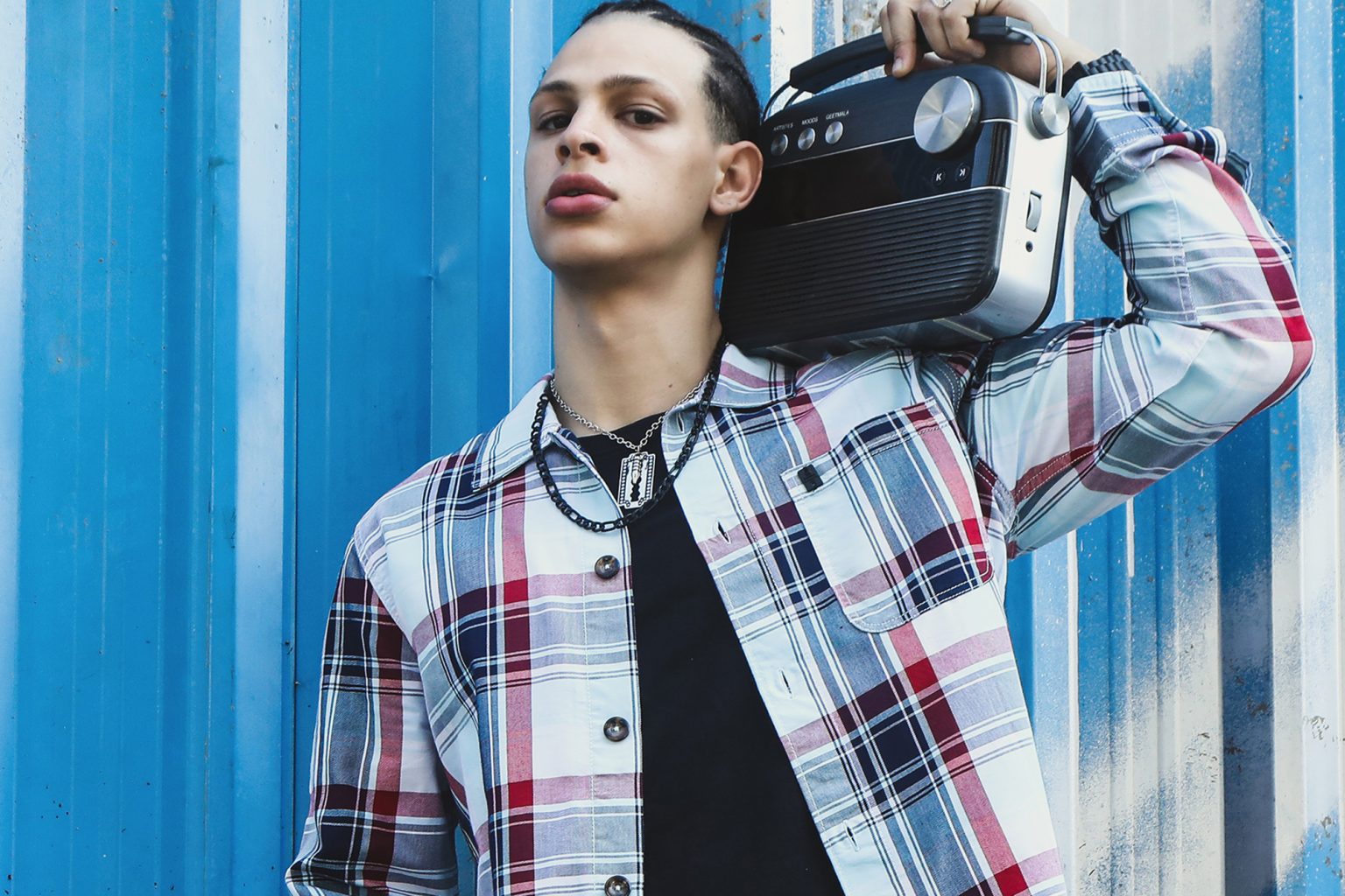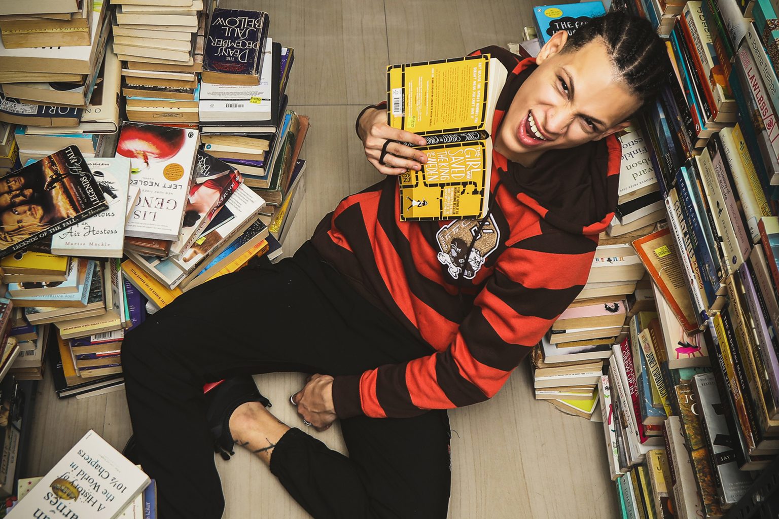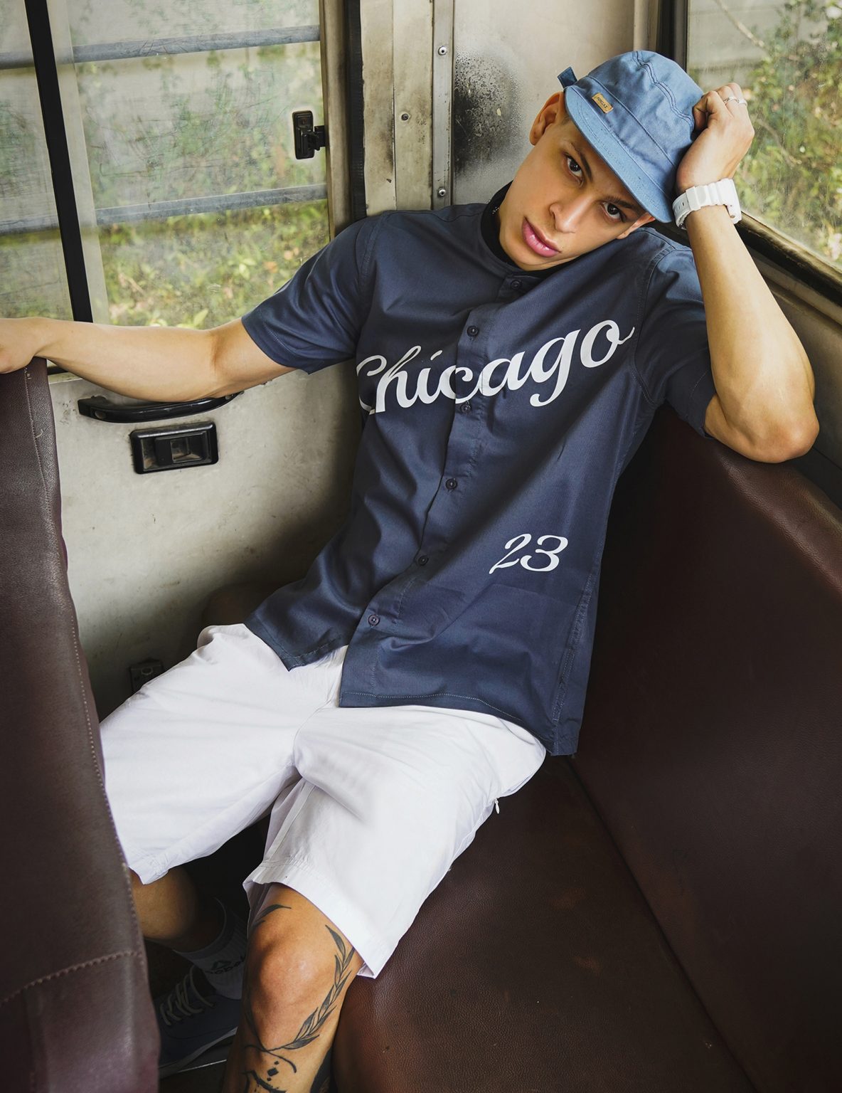 Stories on the Back! An indoor creative shoot celebrating the spirit of the city. This shoot with a clean backdrop highlights bold illustrations, expressive color, and contemporary street styling.